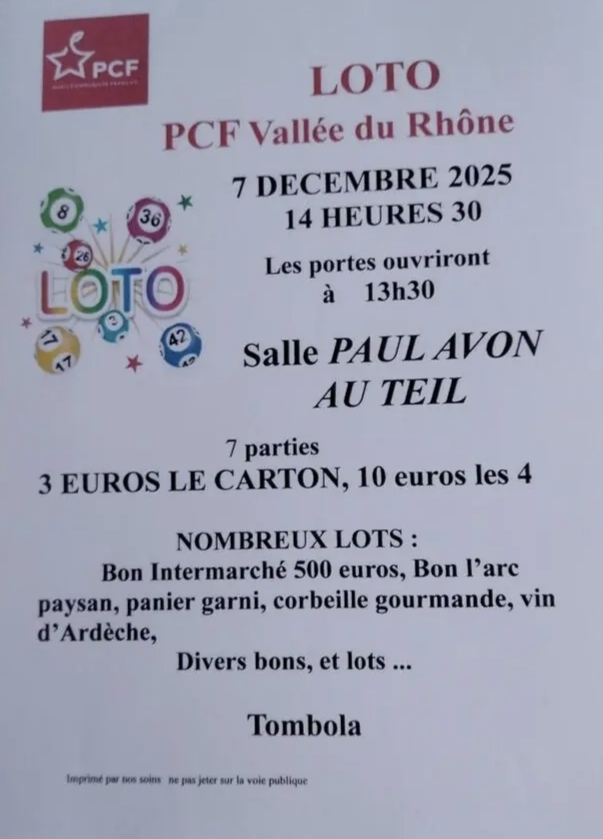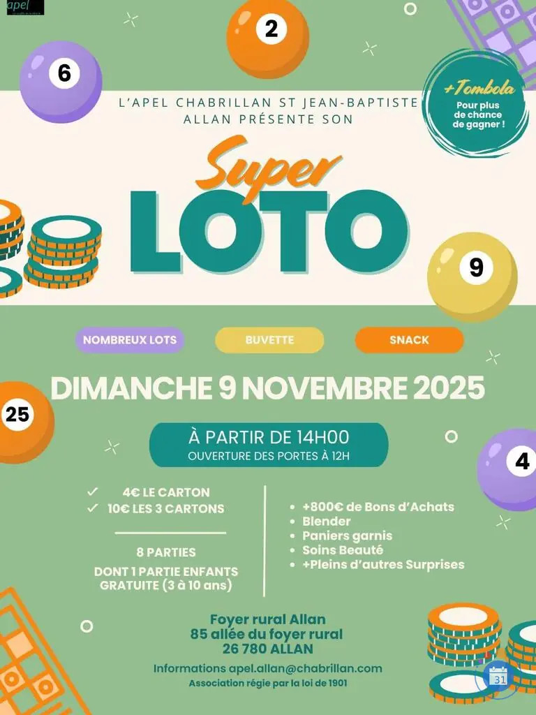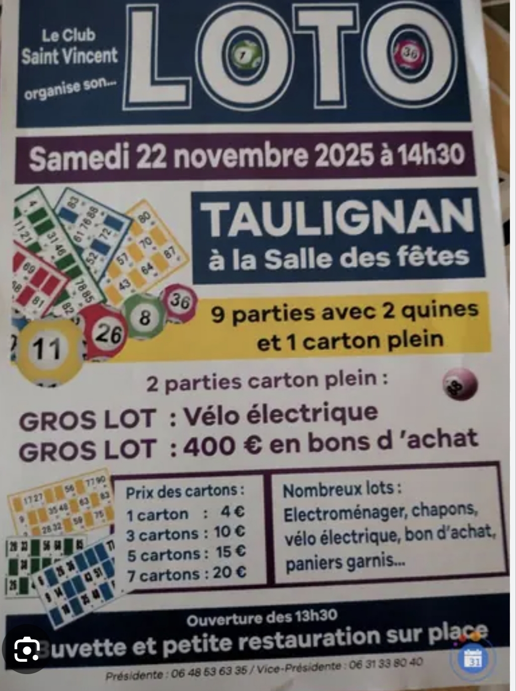 Voici les informations importantes concernant ce loto d'après l'affiche :